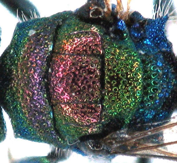 "Punctuation of pronotum, mesoscutum and mesoscutellum coriaceous with distinct rugae formed by alignment of puncture margins."