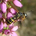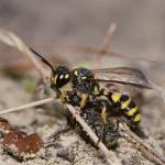 This wasp is associated with sandy soils and can be locally common to abundant on inland heaths and commons, and on the coast (especially dunes and landslips).