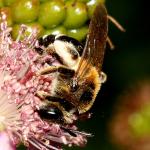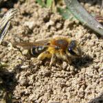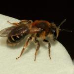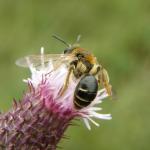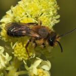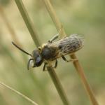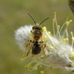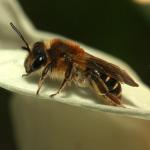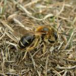 A very smart-looking bee when freshly emerged, with bright foxy hairs on the thorax and a shining black abdomen with thin lines of white hairs on the apices of the segments. The males rapidly become very faded. A good character to separate the females is the form of the hind tibia which is widest at the apex, unlike the rest of the bees with this general appearance. When I first became interested in the aculeates in the 1970s this was a fairly scarce bee, but since then it has become one of the commonest andrenid bees, at least in the southern half of England.