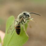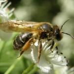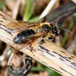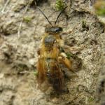 This species nests communally in burrows excavated in the soil, many females sharing a common nest entrance. In The Netherlands, each communal nest may be inhabited by up to 80 females. Investigations in a meadow in the same country revealed an aggregation of about 200 such nests. It was estimated that the total female population in this site was about 15,000 (Leys, 1978).