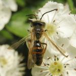 Very rarely encountered and confined to scattered sites in southern England. Females are often locally abundant if a nest has been located. The apparent rarity of this species may be partly explained by the habits of both sexes. Females have very localised nest sites and, on leaving, they seem to fly high up to forage in the canopy of oaks (the flowering period of this tree is also very short). Males too visit the flowers of trees and shrubs for nectar. The species is similarly rare on the continent (e.g. Westrich, 1989), with records from The Netherlands, Belgium, France, Spain, Germany, Switzerland, northern Italy, the Czech Republic, Bosnia, Crimea and the Carpathian Basin (see Leys, 1978).