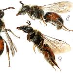 A small mining bee with a largely red gaster in both sexes, very reminiscent of certain bees of the genus Sphecodes (Halictidae). The male has a yellow clypeus and lower paraocular areas.
