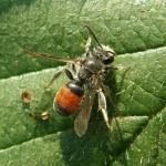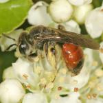 Nests either occur singly or in compact aggregations. In Yorkshire, Cooper (1947) estimated that there were several hundred freshly-emerged adult bees in the dry soil of a fairy ring he excavated in September (the soil being white with the mycelium of the fungus). Very few individuals were found either within or outside this narrow ring, the soil in these areas being rather wet. The species has also been reported to overwinter as an adult in its natal cell (Box, 1919).