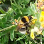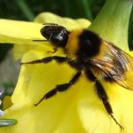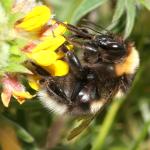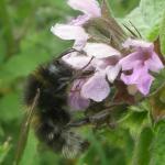 After P. Williams: http://www.nhm.ac.uk/research-curation/research/projects/bombus/mg.html#hortorumA large bumblebee with a very long tongue, which is often held outstretched as the bee approaches a flower. It is one of three species found visiting very deep blooms such as foxglove (Digitalis purpurea) and honeysuckle (Lonicera periclymenum) (the other bees being B. pascuorum and B. ruderatus). Separating B. hortorum from its close relative B. ruderatus is very difficult and has resulted in considerable problems in establishing the range of the latter species. (See BWARS Newsletter, Autumn 2004, pp 27-28).