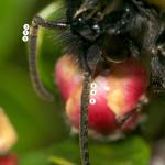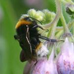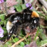 One of the socially parasitic bumblebees formerly placed in the genus Psithyrus, which is now regarded as a sub-genus of Bombus. It is known to parasitise the nests of Bombus terrestris. The general distribution is more southerly than that of its look-alike, Bombus bohemicus, which matches the situation in the known hosts of these two species (B. lucorum is the host of B. bohemicus). This may be a species which is showing signs of distribution change due to climatic change. In view of the northward extension of distribution of several bumblebee species it will be interesting to see whether B. vestalis has also extended its range northwards. Both males and females can be suspected by the narrow yellow patches at the base of the white tail. These patches are generally more intense and extensive than in B. bohemicus, however, microscopic examination will be required to reliably separate the two species.