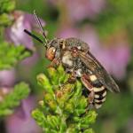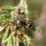Nectar sources include clover (Trifolium spp.), a hawkbit (Leontodon sp.), heather (Calluna vulgaris), a mint (Mentha sp.), ragwort (Senecio jacobaea) and sheep’s-bit (Jasione montana).