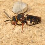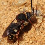 A cleptoparasite of Colletes succinctus and C. marginatus. The form attacking C. marginatus is generally smaller than that associating with C. succinctus, and may be specifically distinct. Richards (1937) additionally lists C. fodiens as a host, but this requires confirmation.
