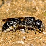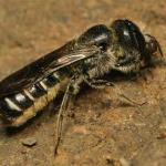 A larger version of the more frequently encountered C. campanularum; of the same general long, thin cylindrical shape, but with distinctive white bands of short hairs on the apices of the abdominal segments.The males also have a two-pronged peg on the final segment of the abdomen and this may be used in the same way as that on the males of C. campanularum. However, I have only ever found males curled up around the base of the stamens of buttercups during poor weather, apparently relying on the closure of the petals to shelter them.