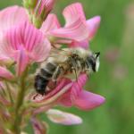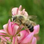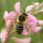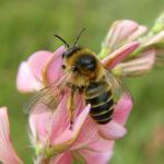 Both males and females visit sainfoin (Onobrychis viciifolia) flowers. On Salisbury Plain males have also been found sheltering in the flowers of sainfoin, clustered bellflower (Campanula glomerata), field scabious (Knautia arvensis), viper's bugloss (Echium vulgare) and ox-eye daisy (Leucanthemum vulgare).