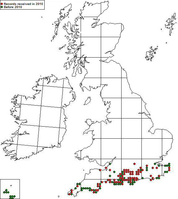 There have been many records from areas colonised in prevous years, but 2010 has seen a considerable number of new records from inland sites in central Hampshire, new records from the Reading area of Berkshire and a significant number of observations from the southernmost parts of Surrey. What is clear now is that what were (a few years ago) distinct populations, are now merging together as the spread continues. The largest aggregations are truly spectacular in scale, often with many tens of thousands of nests.