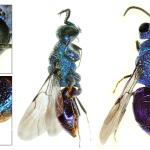 The head, thorax, and anterior gaster are violet; posterior gaster is blue green with viloet.